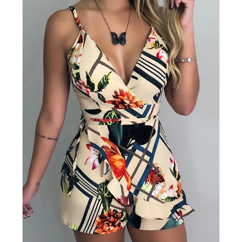 وانت debido aشراء Bodysuits, pues السباغيتي حزام الأزهار طباعة رومبير V الرقبة أكمام بذلة السراويل عالية الخصر ارتداءها مثير بذلة للنساء 2019 Veralls es posible ganar interest