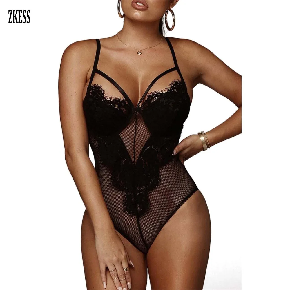 المنتجات ذات الصلة ل Bodysuits و ZKESS النساء الأسود/الأبيض شير رمش بودسوت/ بدلة الجسم المصنوعة من الدانتيل مثير أرجوحة أكمام النوم خليط داخلية نادي رومبير LC32355