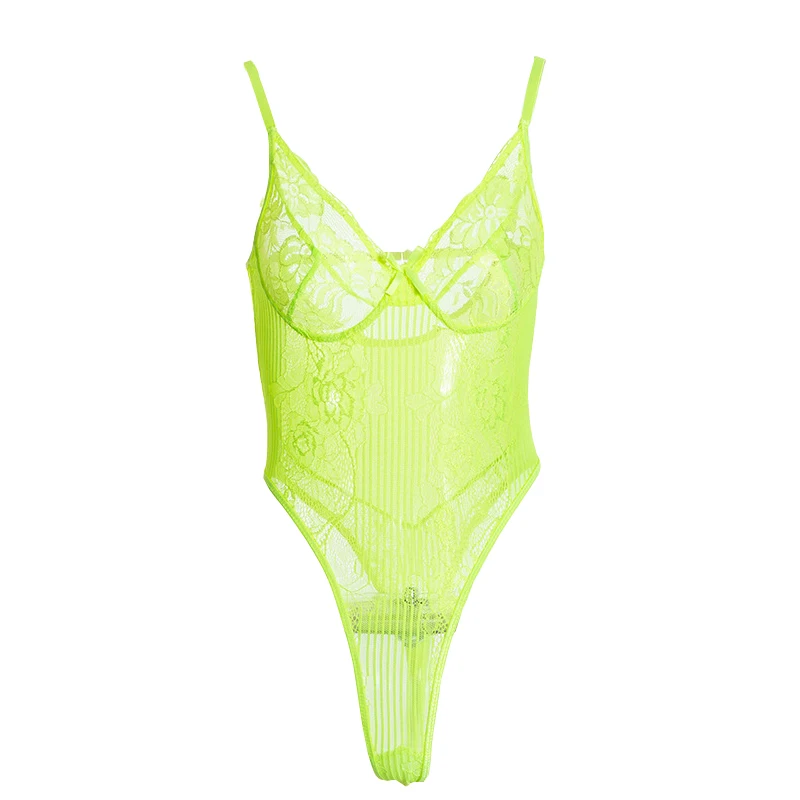 المنتجات ذات الصلة ل Bodysuits و 2019 النيون الأخضر الصيف مثير جديد Playsuit الدانتيل الشارع الشهير بذلة أعلى شفافة ارتداءها الجسم وزرة للنساء الإناث السراويل