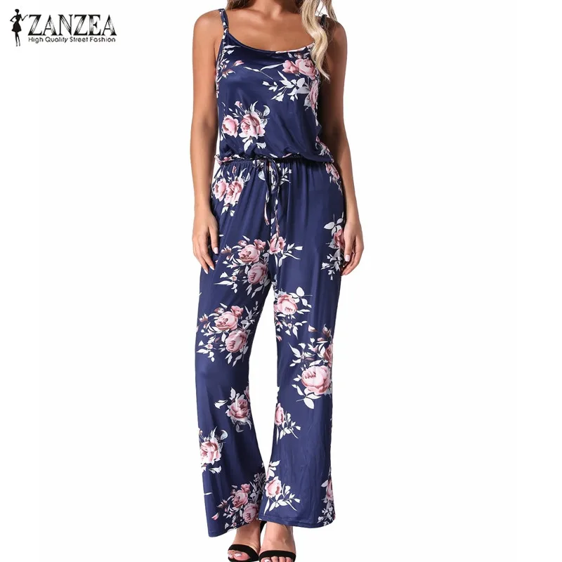 وانت enشراء Bodysuits, luego الصيف الأزهار طباعة السروال القصير حللا النساء 2019 عارضة مستقيم مثير عارية الذراعين طويل بنطال ذو قصة أرجل واسعة Playsuits جيوب داخلية es posible efectuar love
