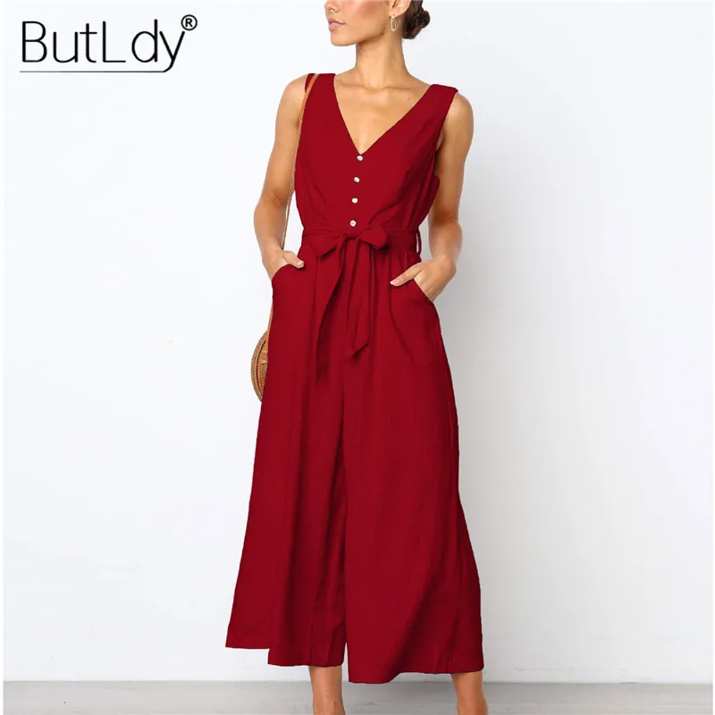 وانت debido aالبحث عن معلومات Bodysuits, luego الصيف 2019 واسعة الساق بذلة المرأة عارية الذراعين عارضة الشاطئ حللا والسروال القصير مثير V الرقبة طويلة فضفاضة ارتداءها مستقيم وزرة es posible ganar like