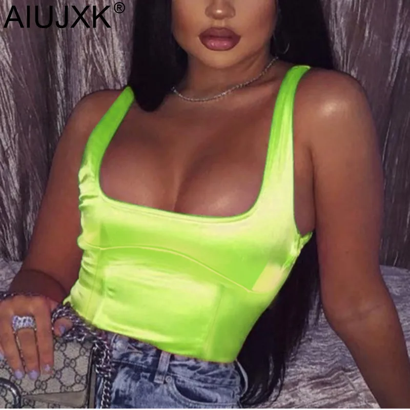 معرض ل AIUJXK ملهى ليلي مثير النيون الأخضر ارتداءها النساء 2019 جديد وصول الصيف الوردي الجسم أعلى الإناث الهيئات Clubwear عارية الذراعين داخلية