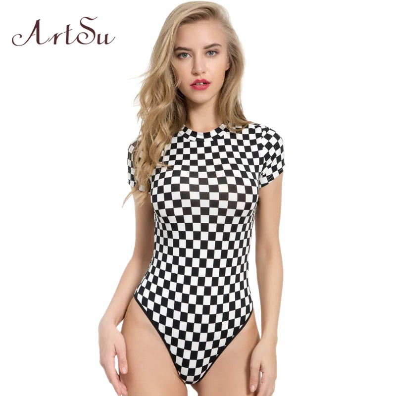 المنتجات ذات الصلة ل Bodysuits و ArtSu النساء مثير ارتداءها القطن منقوشة قصيرة الأكمام الشارع الشهير س الرقبة الأسود Bodycon الإناث الجسم رومبير جديد بذلة ASJU41118