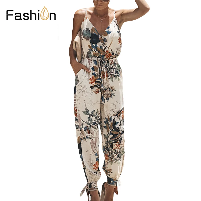 شراءمعلومات اضافية المرأة طباعة بذلة مثير الخامس الرقبة Clubwear عارية الذراعين Playsuit التعادل السروال القصير السيدات حزب حللا زهرة رومبير السراويل ارتداءها
