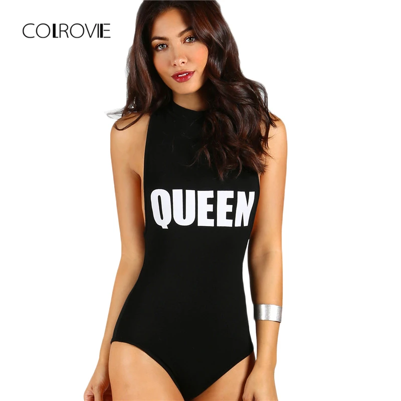 وانت enأرغب في شراء Bodysuits, en aquella época COLROVIE موك الرقبة Racerback ارتداءها أسود مثير نحيل النساء إلكتروني طباعة ضئيلة داخلية الصيف أكمام موجز ارتداءها es posible ganar taste