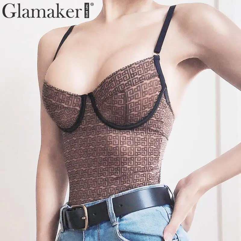 وانت porشراء Bodysuits, en ese momento Glamaker مثير خمر طباعة ارتداءها النساء قمم الصيف أنيقة بذلة رومبير الإناث حزب نادي شفافة playsuit وزرة es posible introducir like