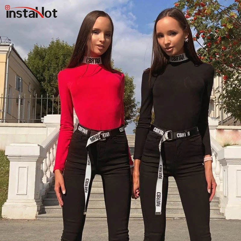 المنتجات ذات الصلة ل Bodysuits و InstaHot القطن إلكتروني المطبوعة الياقة المدورة داخلية النساء موك الرقبة الخريف Bodycon قمم Playsuits مرونة حزب الأزياء الجسم