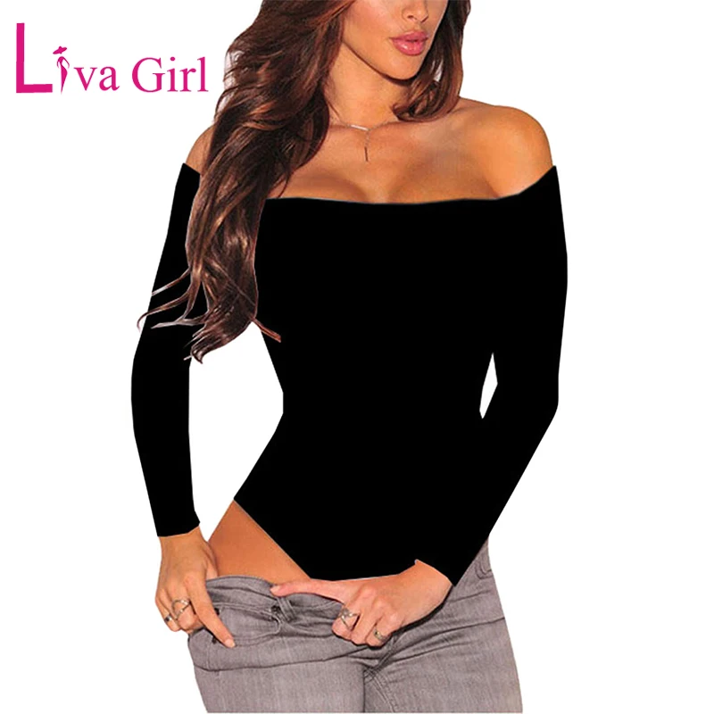 المنتجات ذات الصلة ل Bodysuits و LIVA فتاة مثير أسود طويل كم Bodycon ارتداءها النساء عارية الذراعين قبالة الكتف حللا مائل الرقبة الأبيض داخلية Femin السروال القصير